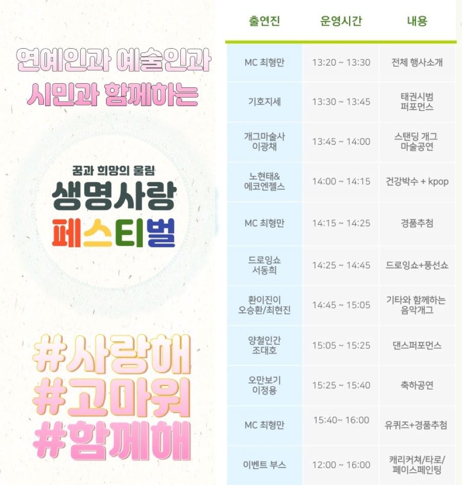 6¿ù 8ÀÏ(Åä) û°è±¤Àå¿¡¼ °³ÃֵǴ "²Þ°ú Èñ¸ÁÀÇ ¿ï¸² »ý¸í»ç¶û Æä½ºÆ¼¹ú"